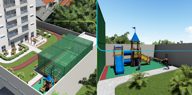 Playground, Área Fitness, Quadra Esportiva, Salão de Festas, Salão de Jogos e Garagem Subterrânea.