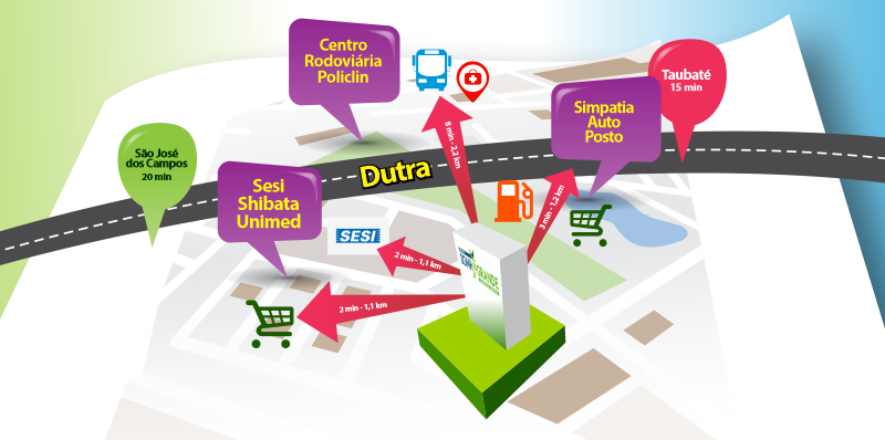 Perto de tudo o que você precisa: escolas, supermercados, posto de saúde, Dutra e principais vias.